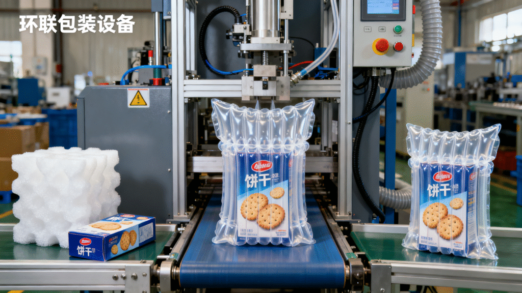 The key to reducing returns lies in targeting the “pain points” of product damage. For fragile foods like cookies and pastries, shock-absorbing packaging is essential. Huanlian’s automatic air-bag filling machines can produce on-demand cushioning air bags that fit the product shape, effectively absorbing impact during transit. Unlike traditional foam padding, these air bags are lightweight, reducing shipping costs while providing superior protection.